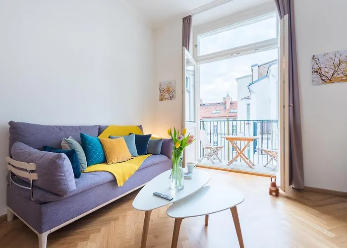O Bright Studios Near Old Town & Excellent City Access By Easybnb Premium Praga está situado no bairro Smichov em Praga, e oferece acesso rápido ao Teatro Nacional de Praga, que fica a 7 minutos de distância a pé. Os hóspedes podem utilizar Wi-Fi para fins profissionais ou de lazer.